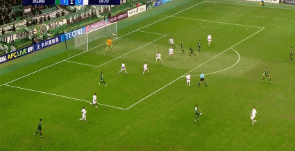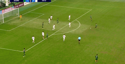 77' เซร์จินโญ่ได้บอลหน้าโซนสามวินาที ยิงจากด้านนอกใส่กองหลังสองคน และบอลพลาดเสา