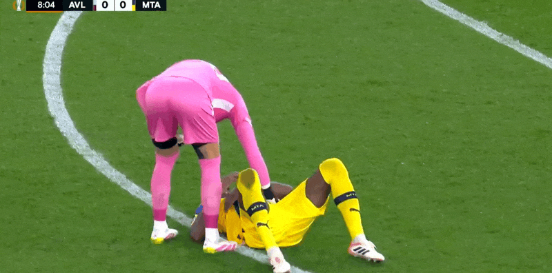 2'โอนาน่าสกัดบอลแล้วจ่ายบอลไป ชโลโมล้มลงกับพื้นและเข้าสกัดโรเจอร์สเพื่อเอาชนะโรเจอร์สด้วยตัวคนเดียว