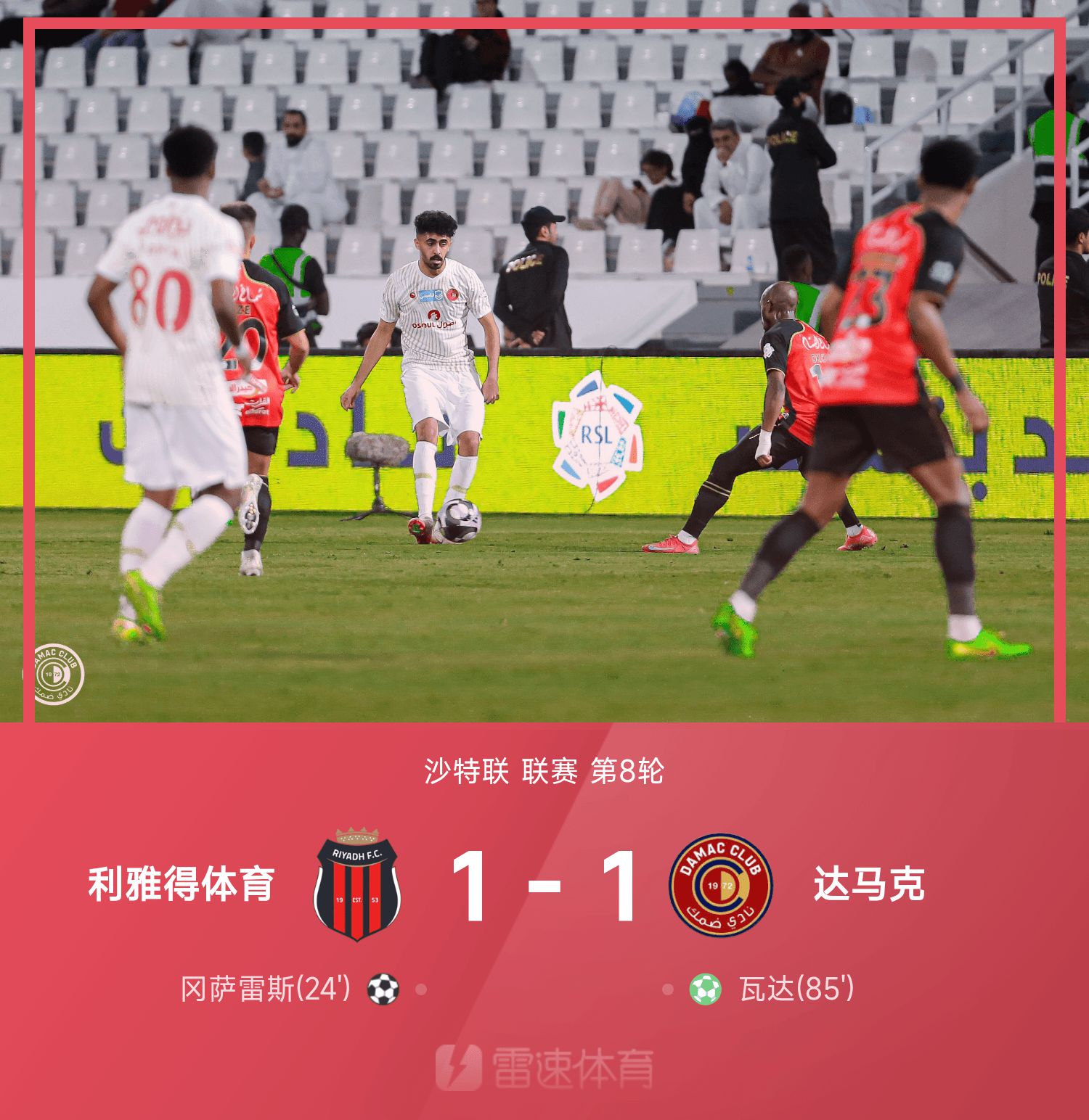 รายงานการแข่งขันซาอุดีอาระเบีย วาดา ยิงจุดโทษตีเสมอ ริยาดสปอร์ต เสมอ ดามัค 1-1