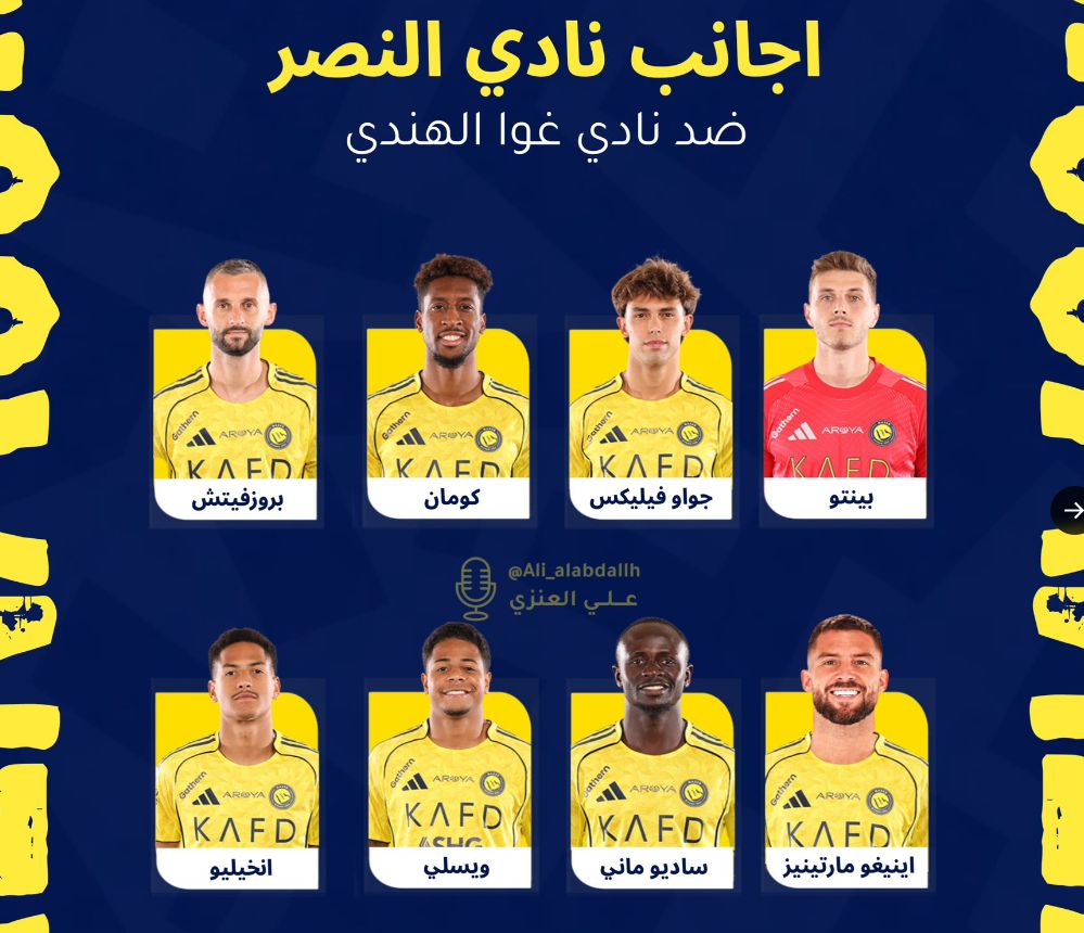 C Ronaldo พักผ่อนในเกมนี้ และ Simakan, Nasser และ Yahya ไม่อยู่เนื่องจากอาการบาดเจ็บ