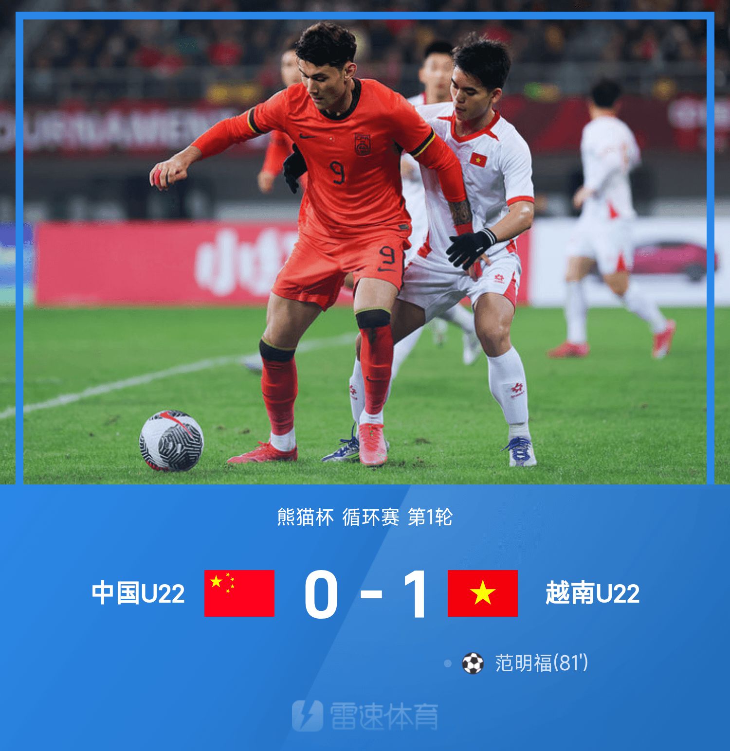 รายงานเกม Panda Cup: กองหลังทำผิดพลาดติดต่อกันและให้ของขวัญ และฟุตบอลทีมชาติ U22 ออกสตาร์ท 0-1 ในเวียดนาม