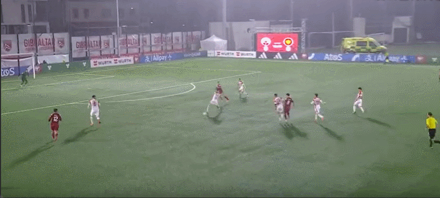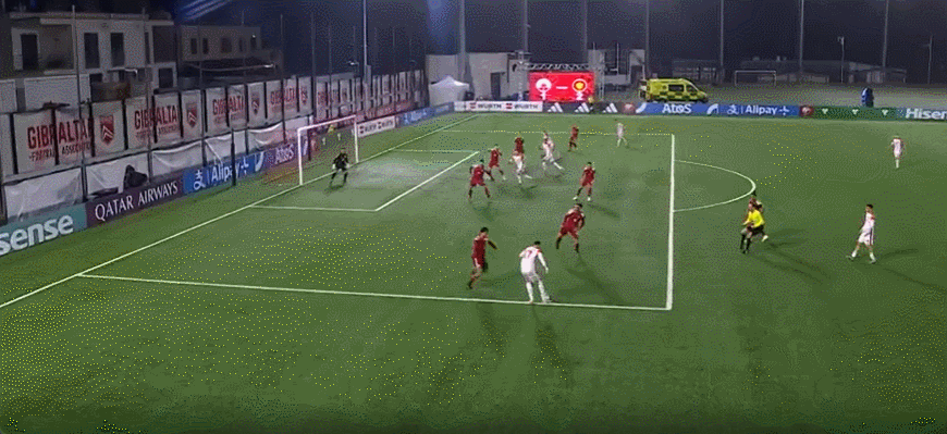 รายชื่อผู้เล่นตัวจริงของยิบรอลตาร์: 23-ฮันกินส์, 3-จอลลี่, 6-โลเปซ, 5-เอนสลีย์ (74'17-โอลิเวียโร), 14-โรนัน (81'7-บาร์โตโล), 2-เมาโร, 22-โตริลลา (56'15-เบนท์), 19-เจสซอป (57'11- ริชาร์ดส์), 4-ปอซโซ, 8-สแกนลอน, 12-เบิร์ก (57'10-เค มอร์แกน)