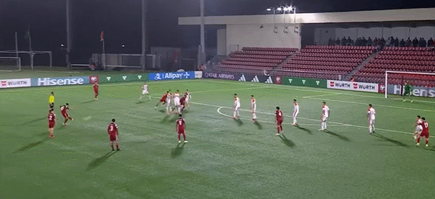 45+4' แอดซิชเตะฟรีคิกและยิงเข้าประตูด้วยเท้าขวา ลูกบอลข้ามคานและบินออกจากเส้นหลัง