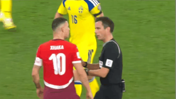 รายชื่อผู้เล่นตัวจริงของสวิตเซอร์แลนด์: 1-Kerber, 13-Rodríguez, 3-Widmer, 4-Elvedi, 5-Akanji, 10-Xhaka, 20-Abicher, 17-Vargas, 22-Reid Er, 11-Ndoye, 7-Embolo
