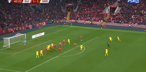 31’สวิตเซอร์แลนด์ขู่จะส่งบอลในเขตโทษ แต่วิดเมอร์โหม่งพลาด target