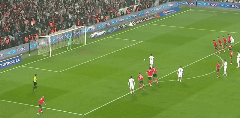 รายชื่อผู้เล่นตัวจริงของตุรกี: 23-Cakir, 14-Badak, 3-Demiral, 20-Kadioglu, 2-Celik, 10-Calhanoglu, 19-Edin, 16-Yuksek, 8-Gulay Er, 11-ยิลดิซ, 7-อัคตูโคกลู