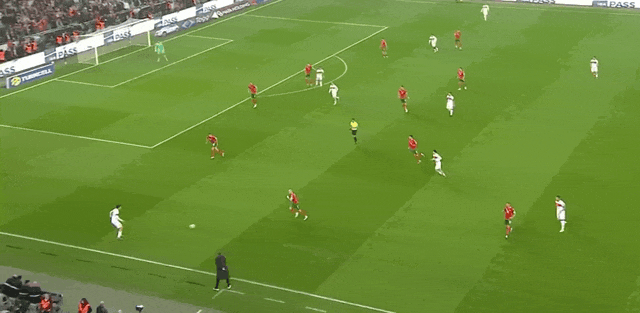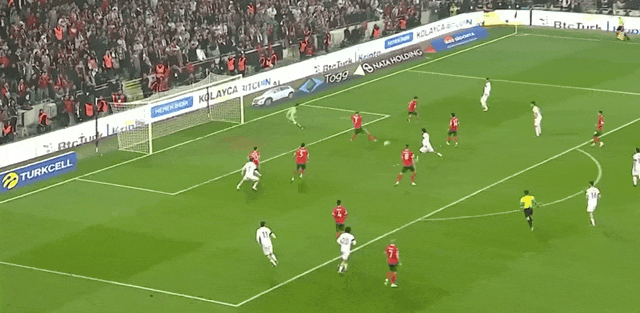 12’ ยิลดิซ ทะลุเขตโทษจากทางซ้ายและอัคตูโกกลูยิงประตูต่ำ