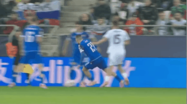 45' สคริเนียร์วอลเลย์อย่างหนักในพื้นที่สามวินาทีแล้วตีบอลสูงโดยตรง