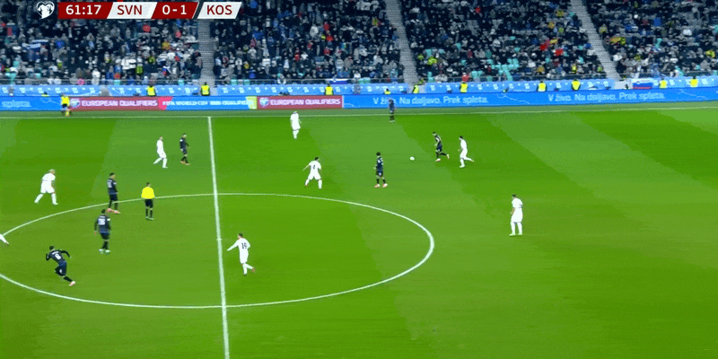 11’ กองหลังโคโซโวทำพลาดในการเคลียร์บอล และวิโปตนิกก็เซฟลูกยิงได้