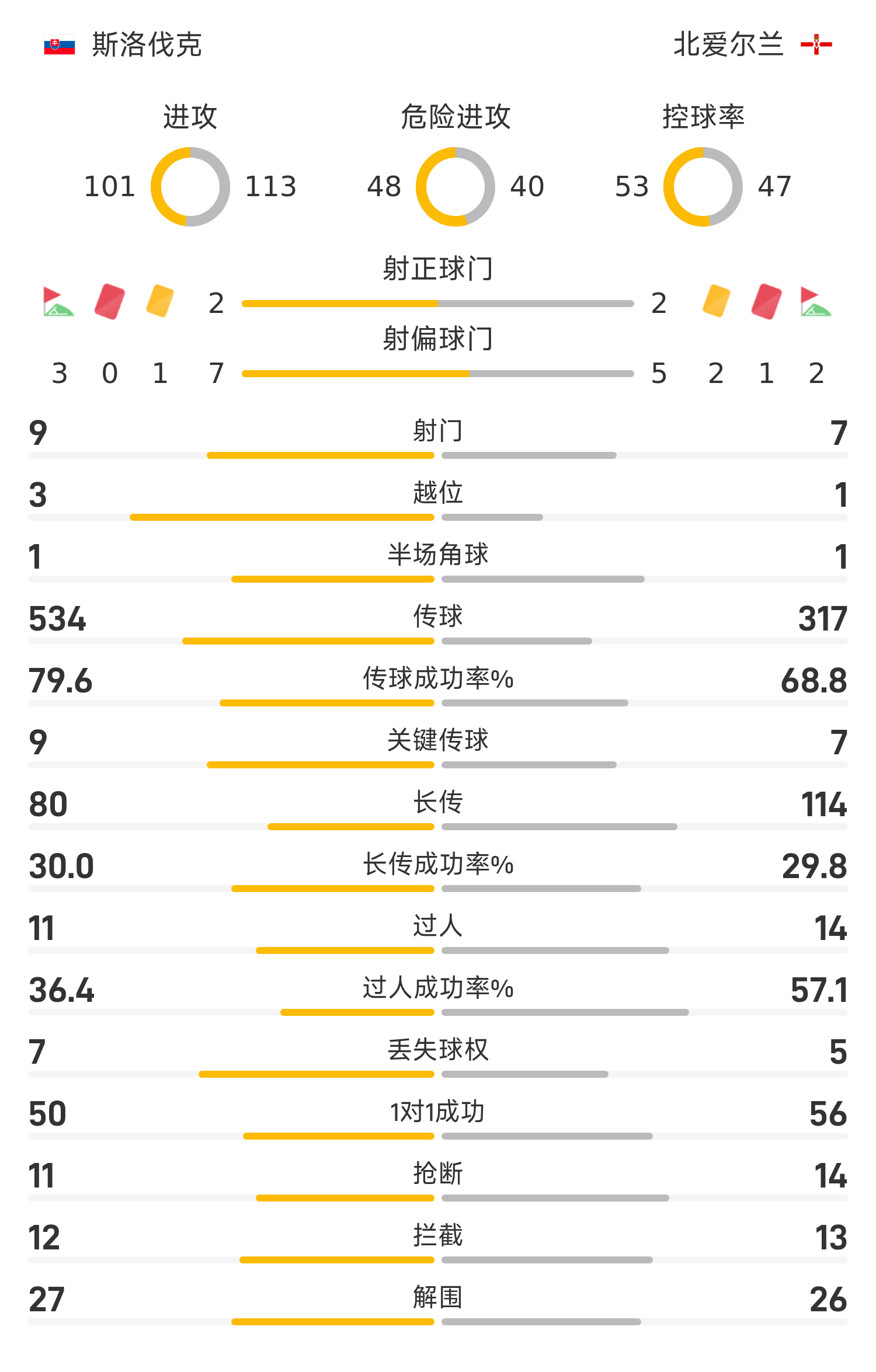 ไอร์แลนด์เหนือ รายชื่อตัวจริง: 1-Peacock Farrell, 17-McNair (73'21-Magnis), 4-Ballard, 13-McConville, 6-Saville, 5-ฮูม (90'22-บราวน์), 2-แบรดลีย์, 14-ไพรซ์, 16-ลียง, 15-เดเวนีย์, 9-ชาร์ลส์ (46'18-เรด เจมี่)
