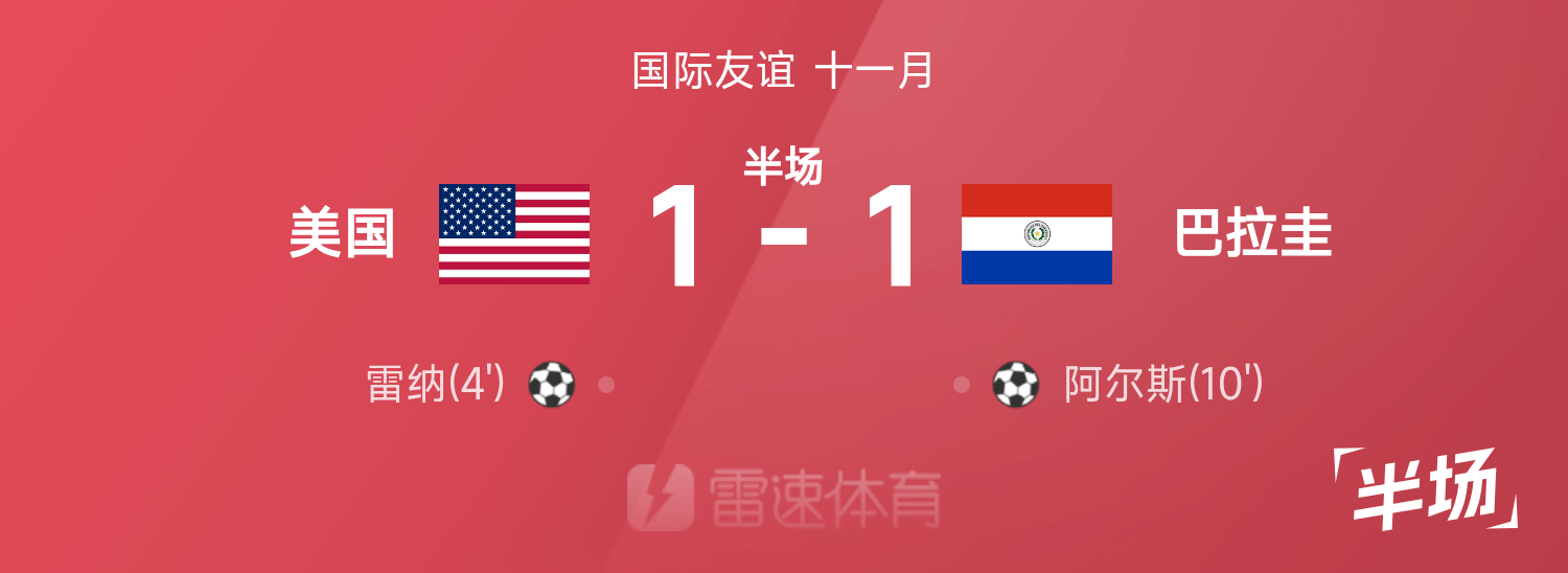 พักครึ่งเกมกระชับมิตร: เรน่า สายฟ้าแลบ, อัลส์ตีเสมอ, สหรัฐอเมริกา 1-1 ปารากวัยชั่วคราว