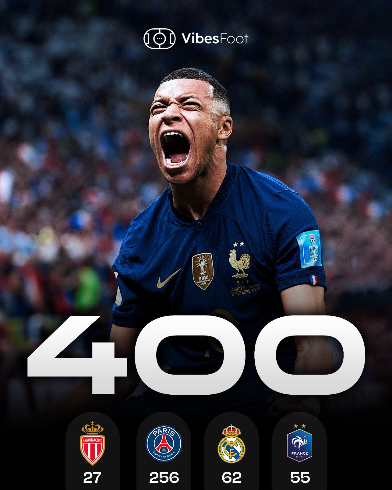 6686 Sports News เมื่อวันที่ 14 พฤศจิกายน ในรอบสุดท้ายของฟุตบอลโลกรอบคัดเลือก เอ็มบัปเป้ทำประตูได้สองครั้ง และฝรั่งเศสเอาชนะยูเครน 4-0 และคว้าตั๋วฟุตบอลโลกไปครอง เอ็มบัปเป้ยังบรรลุเป้าหมาย 400 ประตูในอาชีพของเขาอีกด้วย