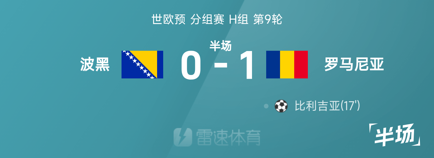 บอลโลกก่อนครึ่งแรก บิลิเกียยิง โรมาเนีย 1-0 ชั่วคราว บอสเนียและเฮอร์เซโกวีนา