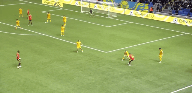 23' คาสตาญจ่ายบอลเข้าไปในเขตโทษ และอานาเบคอฟโหม่งอย่างทรงพลังของทรอสซาร์ดในพื้นที่สามวินาที