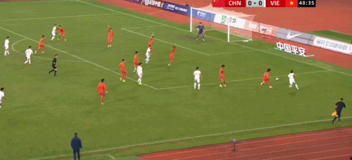 33’ ทีมจีนส่งบอลคุกคามจากทางซ้ายไปยังเขตโทษและผู้เล่นที่อยู่ข้างหน้าประตูก็ช้ากว่าก้าวหนึ่ง