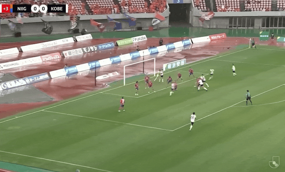 พักครึ่งลีกอาชีพญี่ปุ่น : อิซามุ โอซาโกะ ยิงประตูช่วงทดเวลาบาดเจ็บ, นีงาตะ หงส์ชนะชั่วคราว 0-1 โกเบ