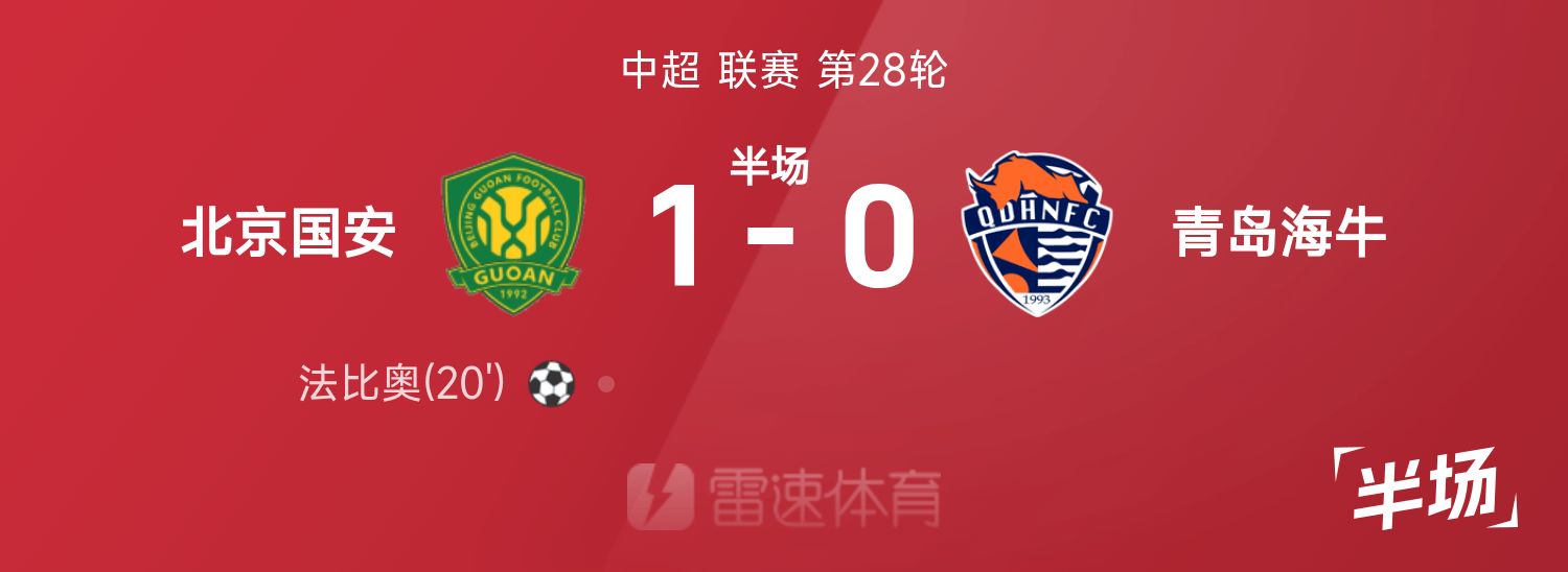 ไชนีส ซูเปอร์ลีก พักครึ่ง : ดาวานแอสซิสต์, ฟาบิโอทำประตู, ปักกิ่ง กั๋วอัน 1-0 ชิงเต่า ไห่หนิว