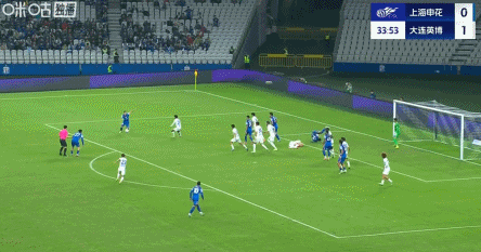 14' เกา เทียนยี่ ส่งบอลเข้าไปในเขตโทษ อู๋ ซีส่ายหัวต่อหน้าประตู และ ล้มเหลวในการเข้าเป้า