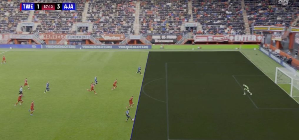 18' เวอร์ฮอสต์หันกลับมาและเลี้ยงบอลในโซนสามวินาทีแล้วยิงประตูแรกของเกมให้อาแจ็กซ์