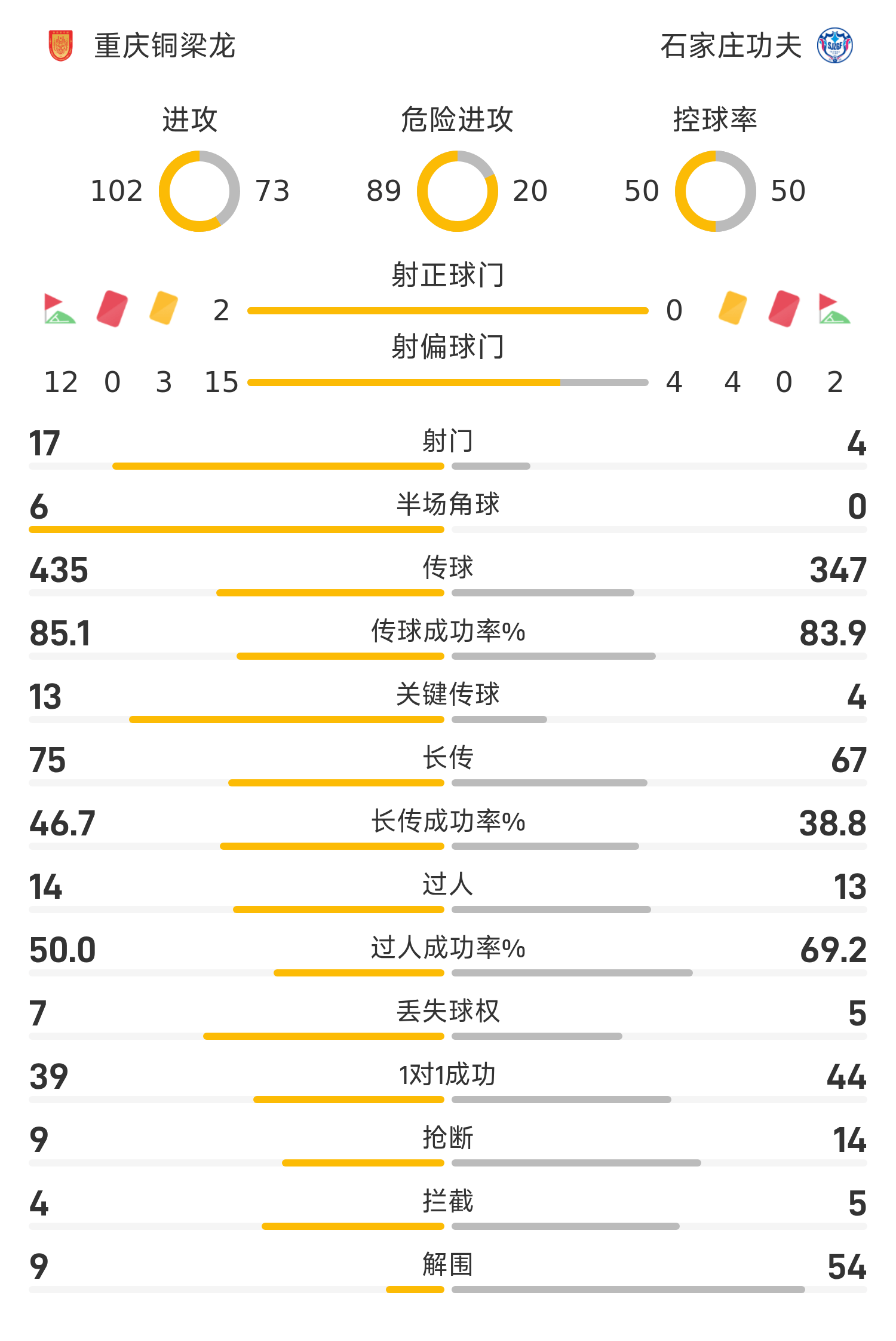 ฉือเจียจวง กังฟู รายชื่อตัวจริง: 31-หลวน ยี่, 19-หลิว ฮวน, 20-หลิว เลอ (72'29-หวัง จิงปิน), 36-หยาง หยุน, 14-หม่า จงชง (90’ 11-จู ไห่เว่ย), 25-อิบราฮิม, 42-เฟิง โจวอี้, 8-อาโยเว่ย, 18-ตู้ จี้ซวน (78'10-อัน ยี่เฟย), 45-จ้าว ซีเย่ (72'2 7-เกา ฮวาเซ่), 33-ดาน แคลร์ 26-เจีย จิงรุย, 28-หลี่ จิงรุน, 2-เติ้ง เจียเจี๋ย, 11-จู ไห่เว่ย, 17-ซุน เว่ยเจ๋อ, 27-เกา ฮวาเซ, 24-หยู ไซเอี้ยน, 10-อัน ยี่เฟย, 5-หลิว ยูฟู, 29-หวัง จิงปิน, 44-กอนซาเลซ