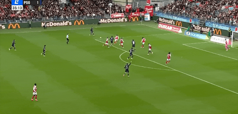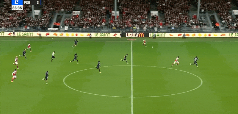24' ปารีสเล่นได้อย่างราบรื่นในแดนหน้า และมายูลูเผชิญหน้ากับผู้รักษาประตูด้วยการยิงนัดเดียวและได้รับการช่วยเหลือ