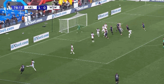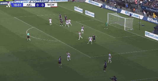 26’ ผู้รักษาประตูโอ๊คแลนด์ตีออกทันเวลาและช่วยชีวิตทีมด้วยการช่วยเหลือคู่ต่อสู้เพียงลำพัง