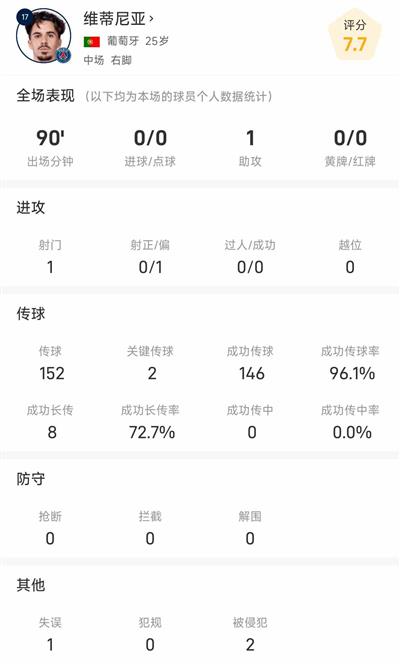 นอกจากแอสซิสต์แล้ว สถิติต่างๆ ของวิตินญ่าในเกมนี้น่าประทับใจมาก