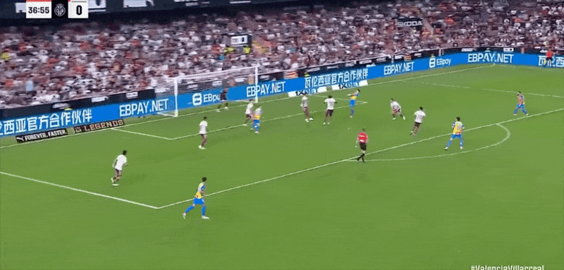 รายชื่อผู้เล่นตัวจริงของบาเลนเซีย: 25-Aguirre Zabala, 14-Gaya, 12-Correa, 3-Copet, 5-Tarraga, 18-Pepelu, 7-Danjuma, 11-Rioja, 16-Lo Pace, 8-เกร์รา, 15-เบลตรัน