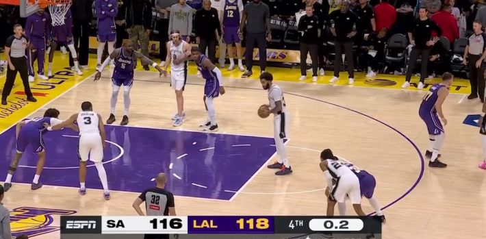 ในตอนท้ายของเกม เลเกอร์สเอาชนะสเปอร์ส 118-116 อย่างหวุดหวิด