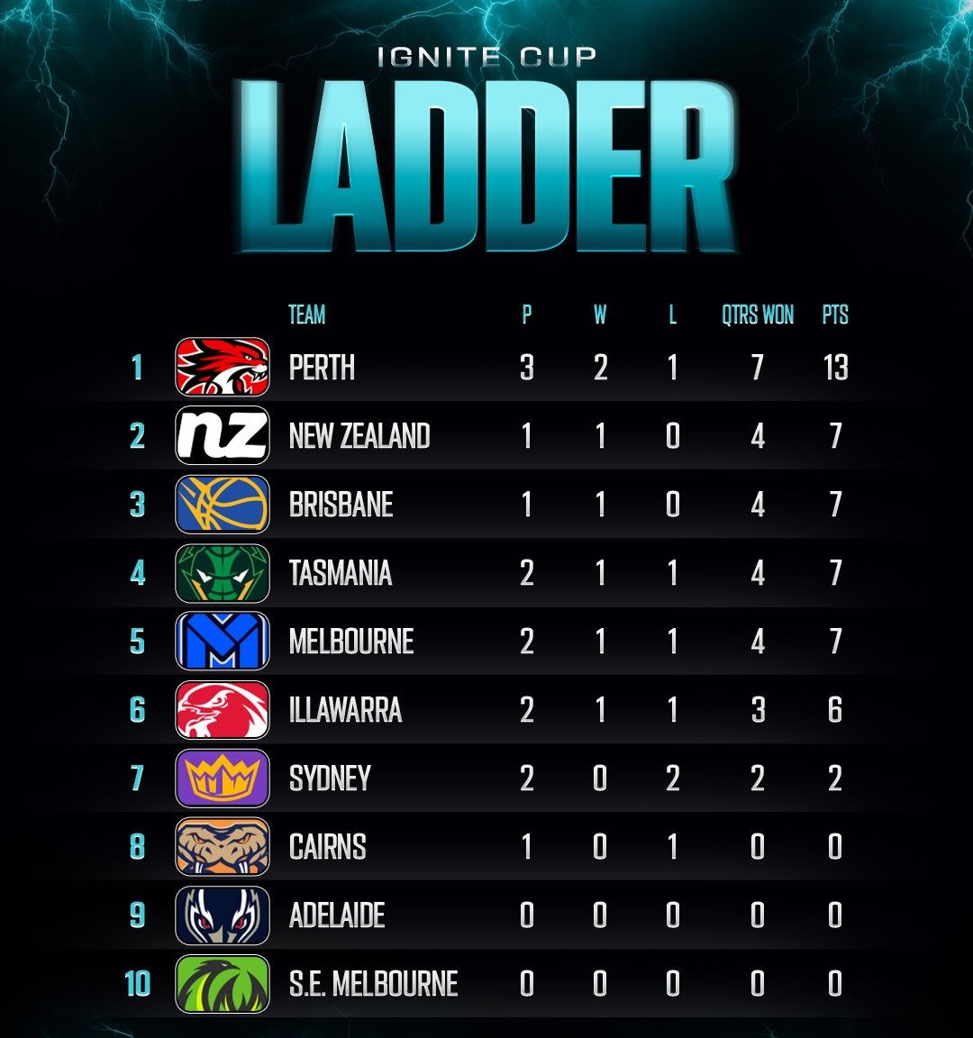 Ignite Cup ใช้ระบบคะแนนแลดเดอร์ใหม่ระบบแรกของโลก ทำให้การแข่งขันน่าตื่นเต้นยิ่งขึ้น ทีมที่ชนะในแต่ละเกมจะได้รับ 3 แต้ม และทีมที่ชนะในแต่ละควอเตอร์ก็จะได้รับ 1 แต้มเช่นกัน หากสองทีมมีคะแนนเท่ากันในควอเตอร์เดียว แต่ละทีมจะได้รับ 0.5 คะแนน ”