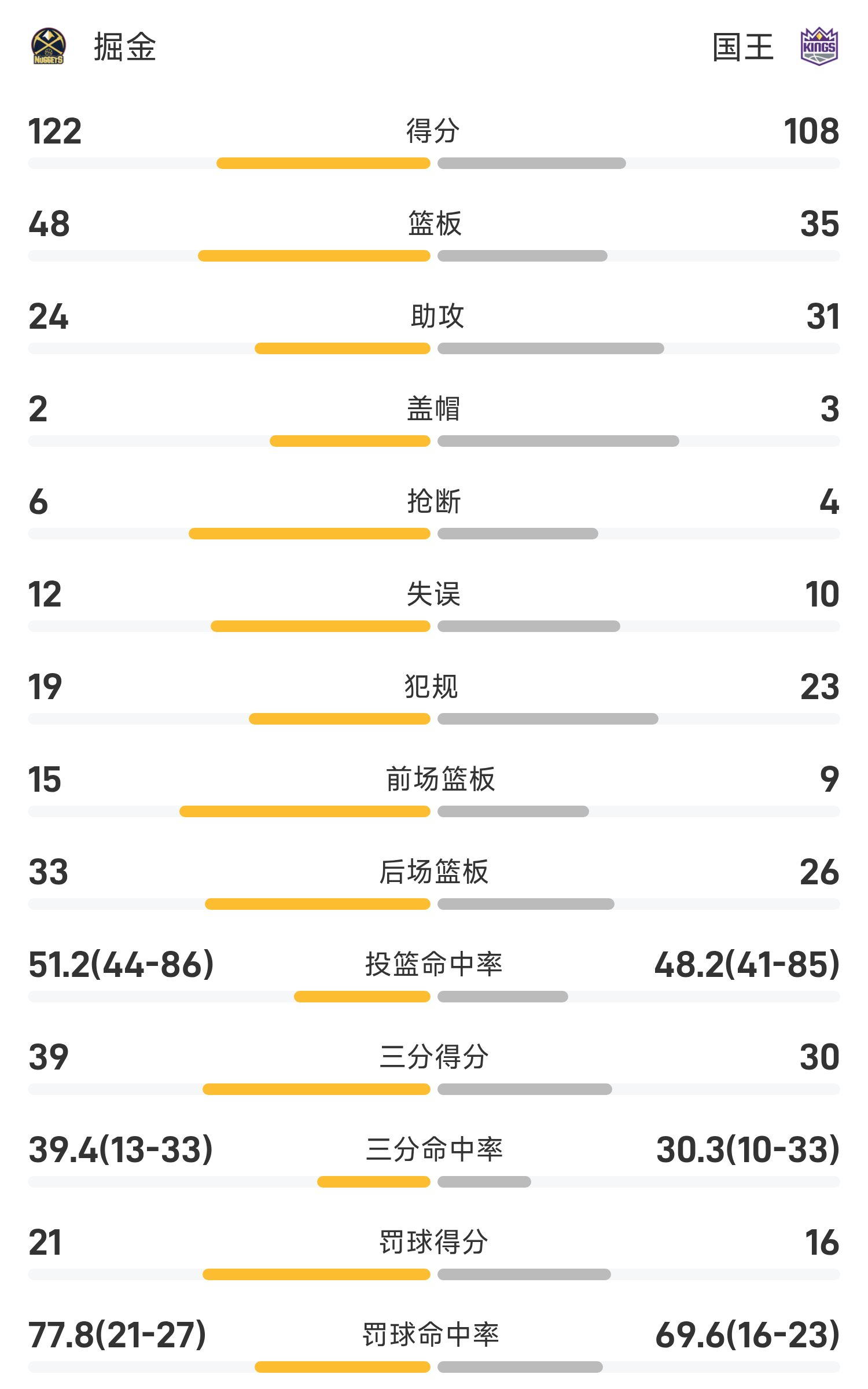 ในตอนท้ายของเกม คิงส์ แพ้ นักเก็ตส์ 108-122