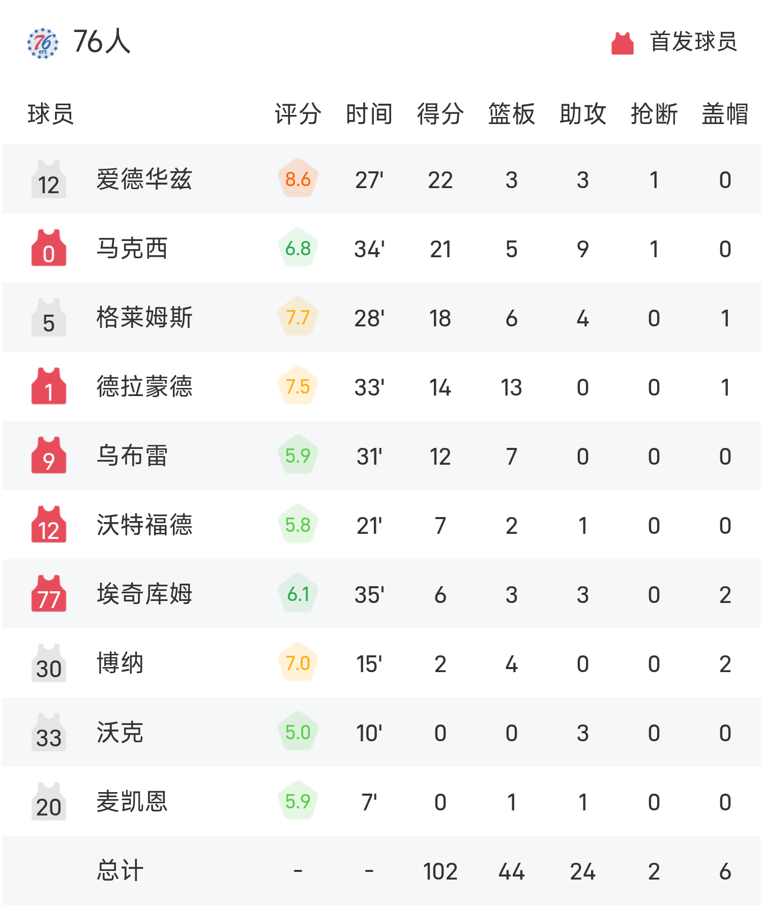 รายงานเกม NBA แม็กซี่มี 21 แต้ม 9 แอสซิสต์ 76ers เอาชนะเซลติกส์ 102-100 อย่างหวุดหวิด