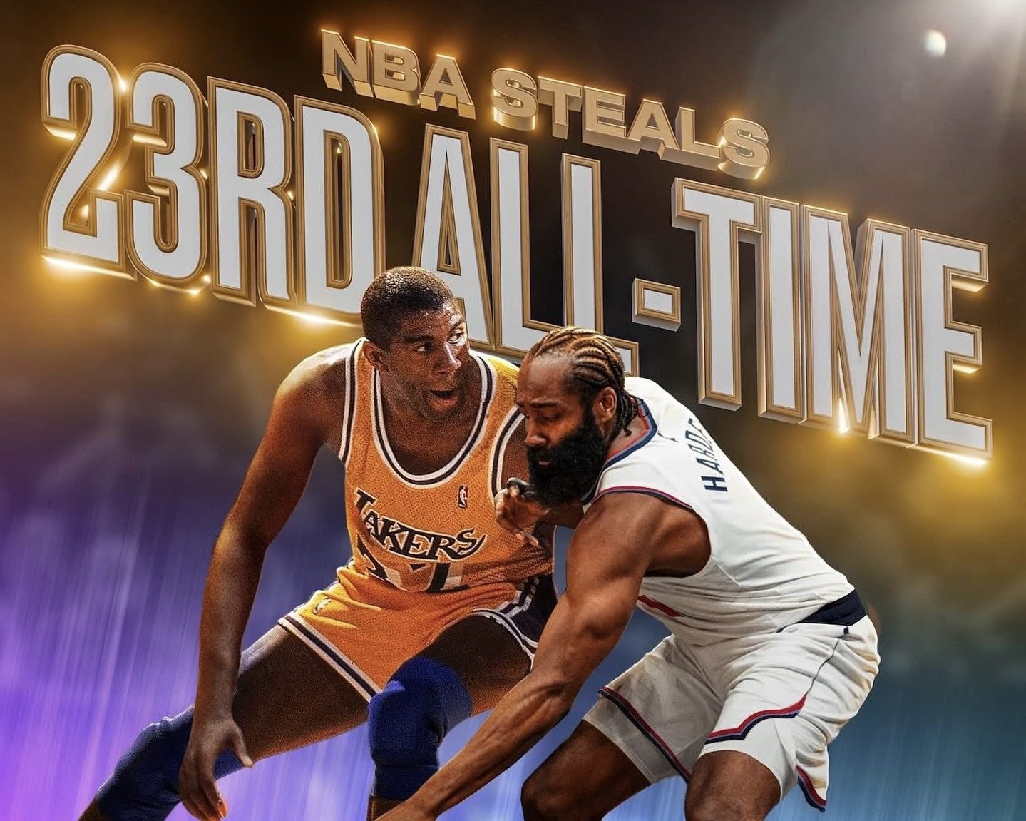 เหนือกว่าเมจิกจอห์นสัน! การสกัดกั้นทั้งหมดของฮาร์เดนเพิ่มขึ้นเป็น 23 ในประวัติศาสตร์