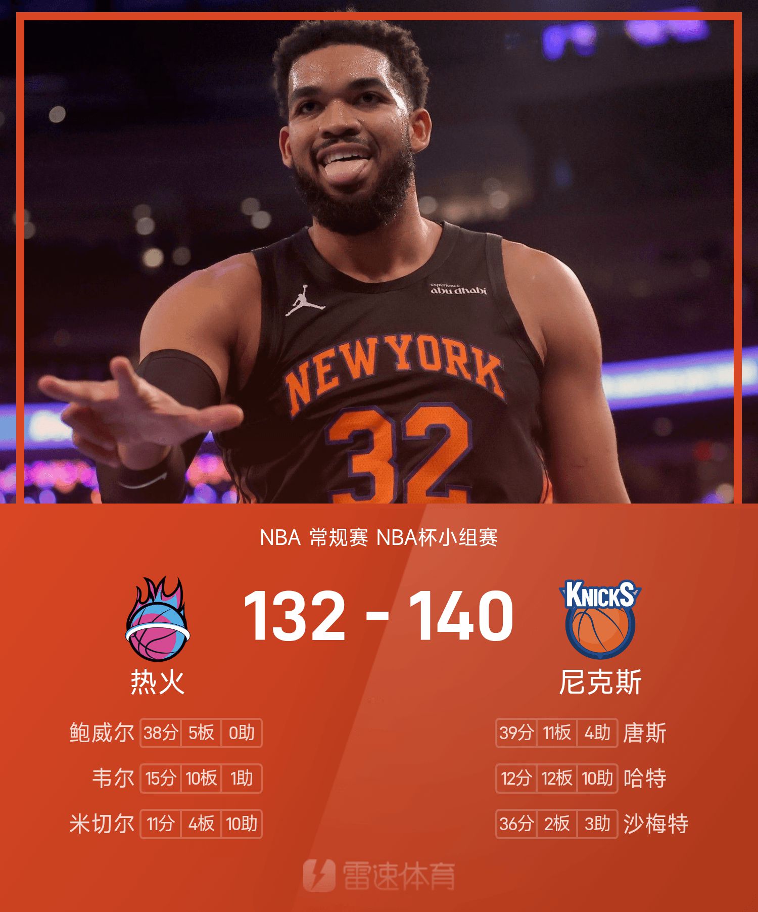 6686 กีฬา ข่าว 15 พฤศจิกายน ในการแข่งขันรอบแบ่งกลุ่ม NBA Cup ประจำฤดูกาล 25/26 ของ NBA ทีม Knicks เผชิญหน้ากับความร้อนแรง จบเกม นิกส์ เอาชนะ ฮีต 140-132 ทาวน์สทำคะแนนสูงสุดในเกม 39 แต้ม 11 รีบาวน์และ 4 แอสซิสต์ นำทีมนิกส์คว้าชัยชนะ