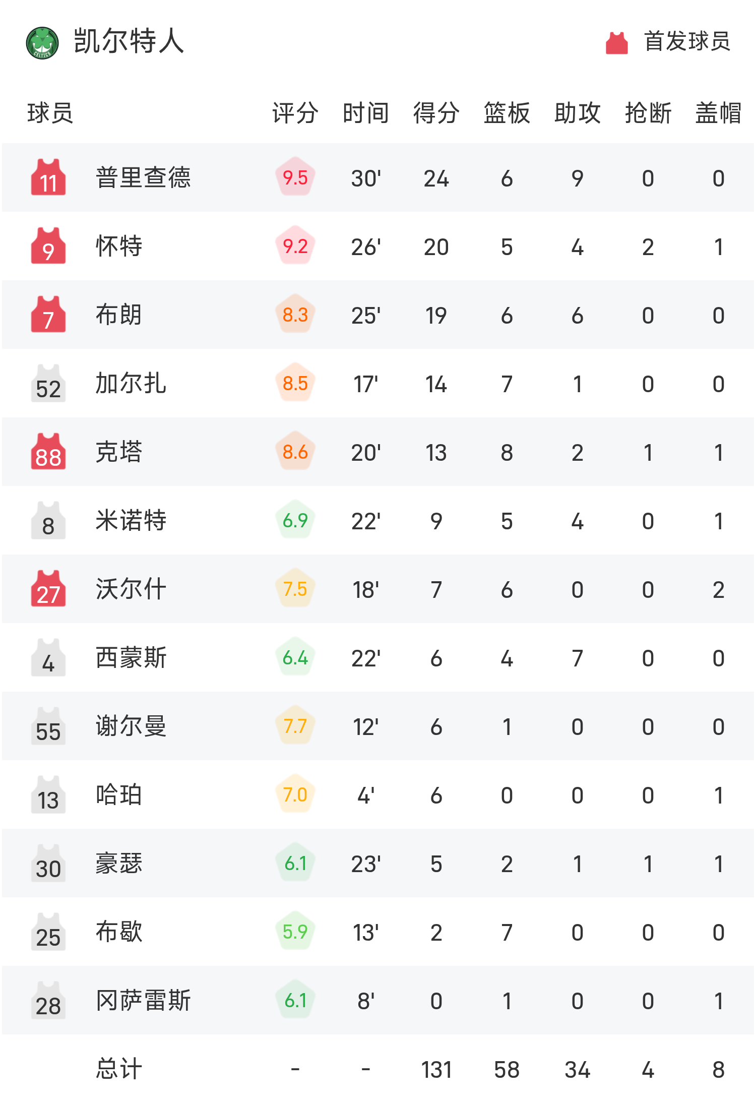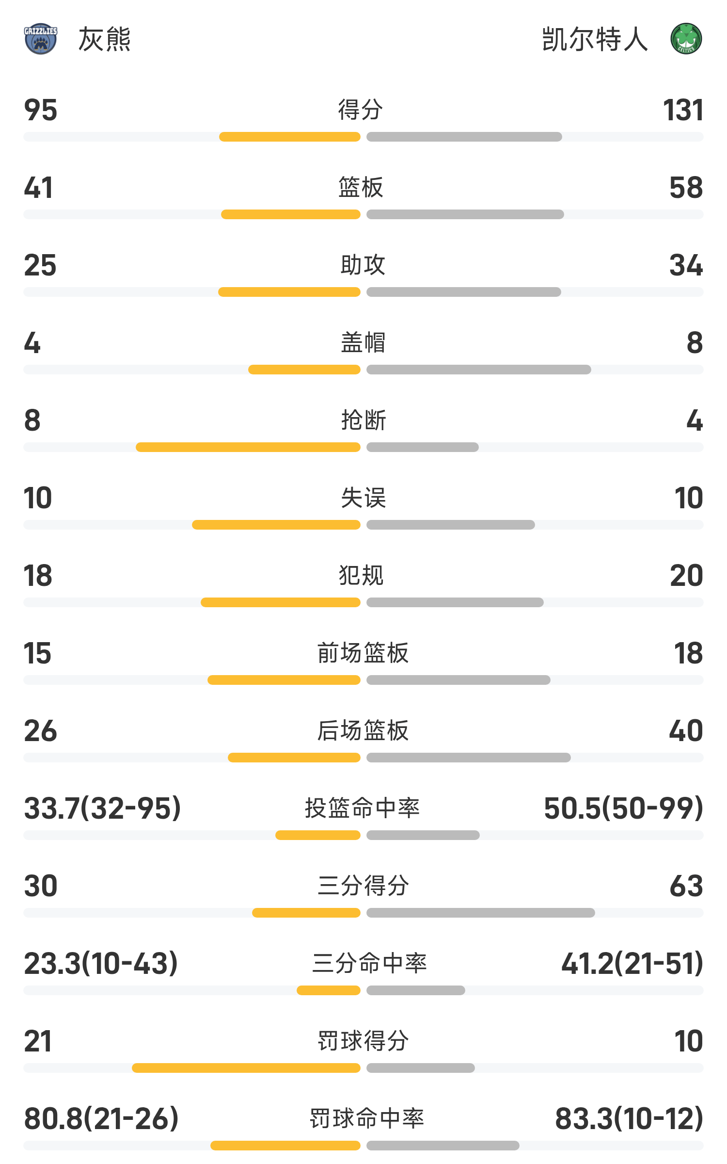 ในตอนท้ายของเกม เซลติกส์เอาชนะกริซลี่ส์ 131-95