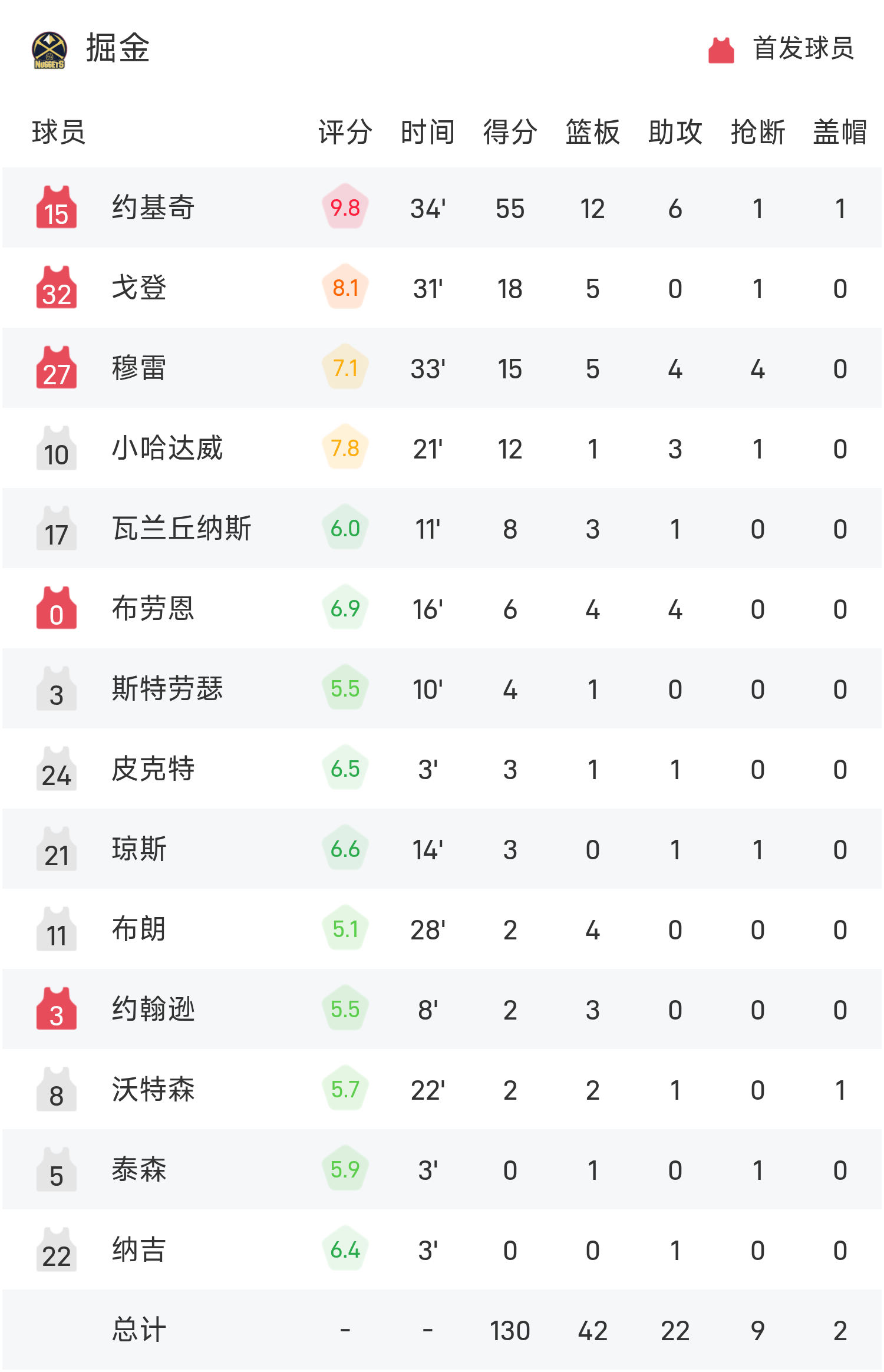 รายงานเกม NBA โยคิช 55 แต้ม 12 รีบาวด์ 6 แอสซิสต์ นักเก็ตส์ เอาชนะ คลิปเปอร์ส 130-116